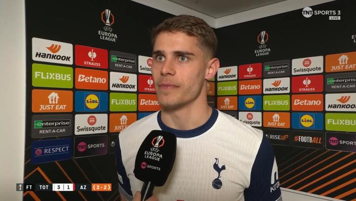 托特纳姆热刺在欧联联赛1/8决赛次回合中以3-1战胜阿尔克马尔,以总比分3-2成功晋级八强。赛后,球队后卫范德芬接受了TNT体育的采访。范德芬表示:“我真的很高兴,球队表现出色,我们成功晋级到了下一轮,这才是最重要的。本赛季的比赛并不轻松,所以赢得本轮比赛对我们来说非常重要。”